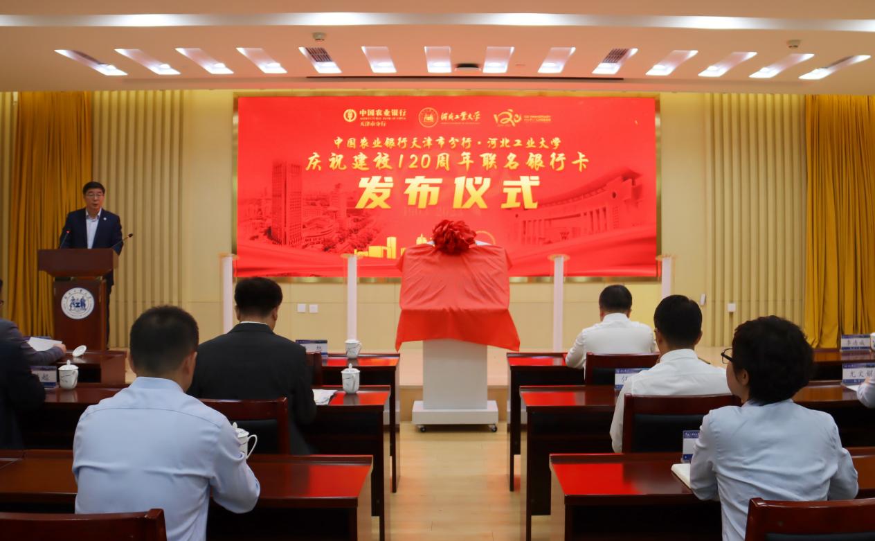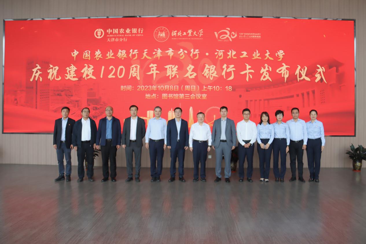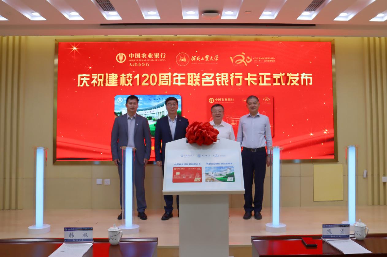 10月8日上午,中国农业银行天津市分行—河北工业大学庆祝建校120周年联名银行卡发布仪式举行。中国农业银行天津市分行党委书记、行长钱宏,中国农业银行天津市分行党委委员、副行长李连成,河北工业大学党委书记韩旭出席发布仪式。仪式由河北工业大学党委常委、副校长李子彪主持。