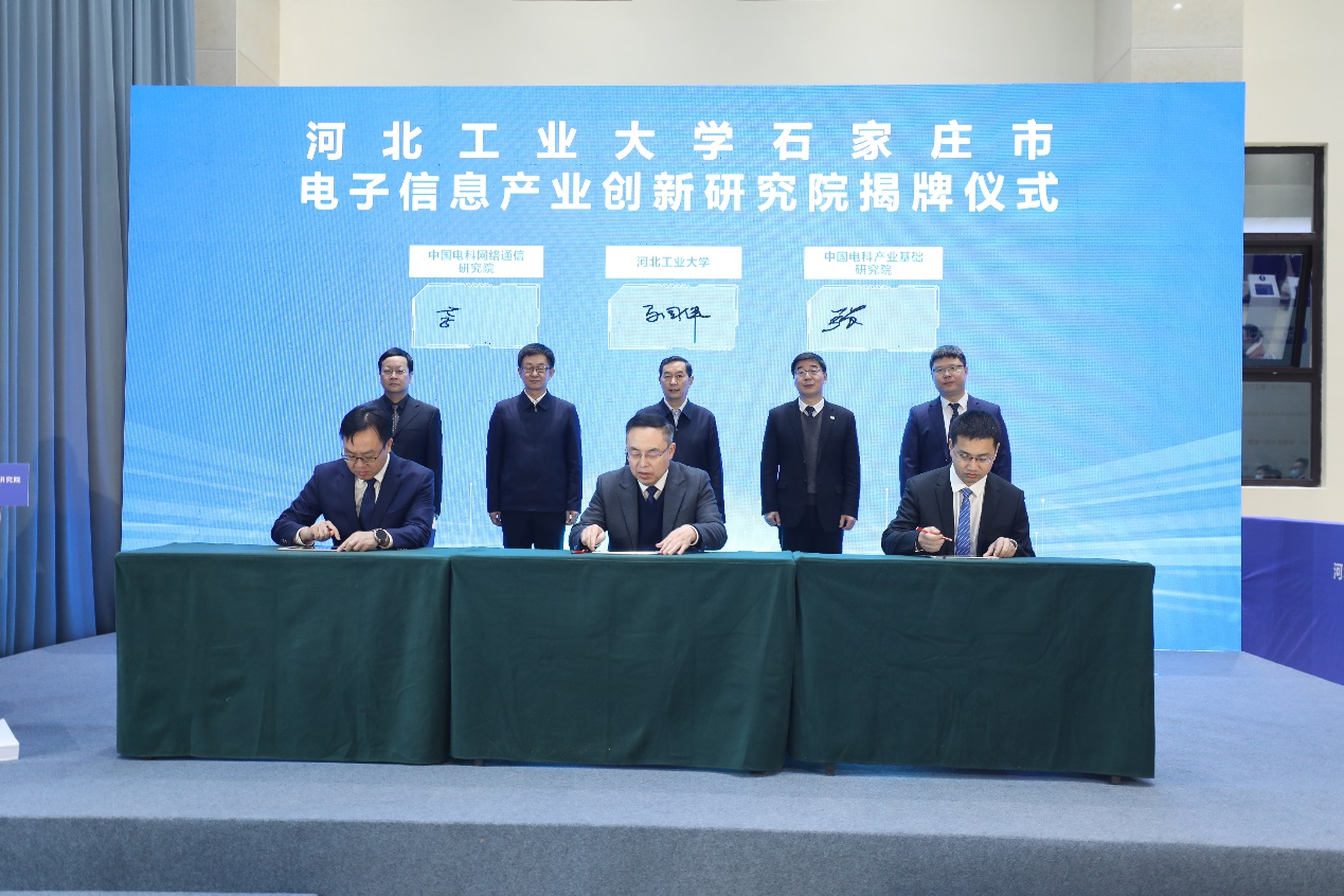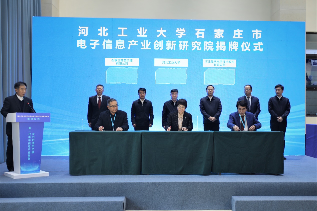 1月16日,河北工业大学石家庄市电子信息产业创新研究院揭牌仪式在石家庄市鹿泉区举行。河北省委常委、石家庄市委书记张超超与校党委书记韩旭共同为创新研究院揭牌。