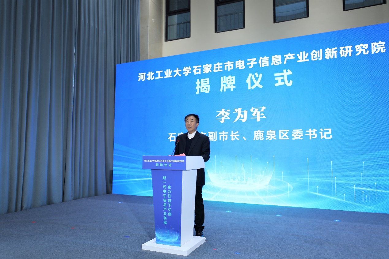校党委副书记贺立军代表学校向石家庄市和鹿泉区对学校的信任和创新研究院成立过程中给予的帮助与支持表示衷心感谢。他表示,创新研究院是河北工业大学与石家庄市人民政府、鹿泉区人民政府为贯彻实施创新驱动发展战略,围绕区域产业特色,服务地方经济发展需求,探索新型合作路径的科技创新平台。河北工业大学倡议发起成立“河北省电子信息产业联盟”,在河北省相关政府职能部门和群团组织支持和指导下,邀请京津冀行业重点企业、科研院所以及高校参与,共同助力打造河北省新一代电子信息产业集群,实现“政产学研用”多方高水平融合协同,推动中国式现代化在河北展现出美好图景。