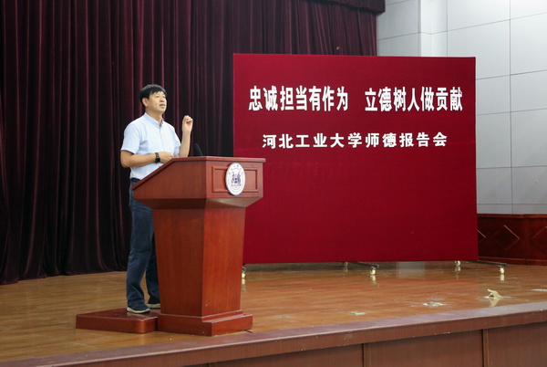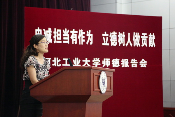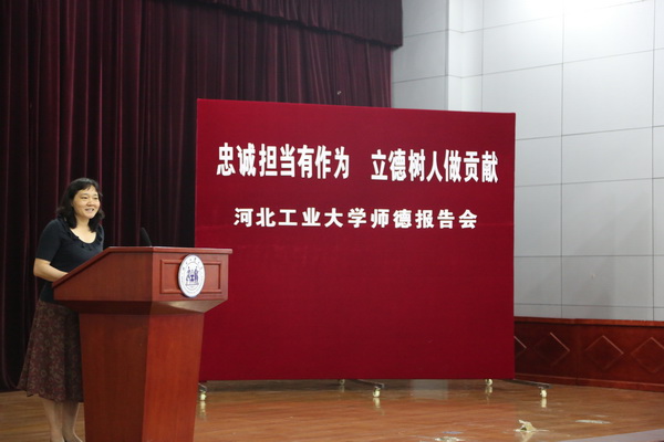 6月9日,由校工会、人事处、宣传部主办的“忠诚担当有作为、立德树立做贡献”师德报告会在行政楼一楼报告厅举行。校党委常委杨玉桢、校各职能部门及各学院负责同志出席。李春利、邢成芬、王秀娟、刘征和张丽红等五位老师从科研、教学、管理服务等方面,结合工作实践和切身感悟,诠释了什么是师德,什么是工大精神。报告会由兼职副主席张紫辉主持。