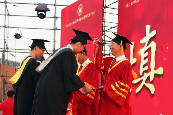 校党委副书记、副校长韩旭教授为毕业生代表拨穗正冠